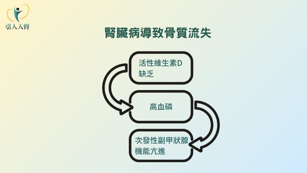 - 後果:這就是「次發性副甲狀腺機能亢進」,此時副甲狀腺為了維持平衡,會瘋狂地命令骨頭釋放鈣質,這種不可逆的流失,最終導致嚴重的骨質疏鬆。