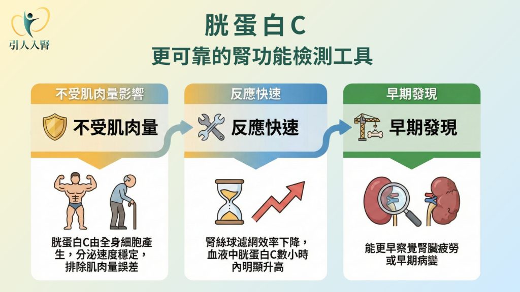 如果這些都正常,但腎絲球過濾率還是忽高忽低,可透過胱蛋白C進一步檢查,它能幫助醫師更精準判讀,也能讓受檢者減少不必要的焦慮。