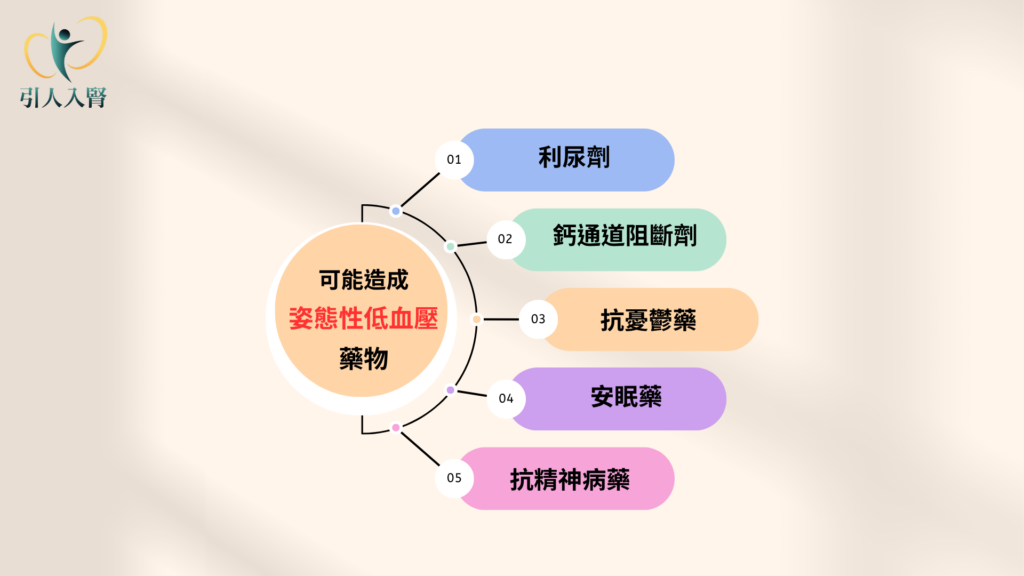 - β阻斷劑(β-Blockers):如美托洛爾,降低心率和心輸出,用於高血壓或心律不整。它們抑制交感神經,站立時心臟無法加速泵血。與利尿劑合用時風險更高。建議定期檢查血壓,並調整生活如多運動。
